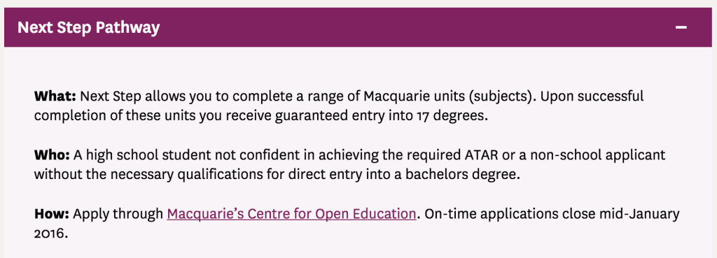 这真的取决于你在找什么!我就读的麦考瑞大学(Macquarie university)提供了七种不同的替代途径,我遇到的和我一样专业的人,他们使用过每种不同的途径。这就说明了ATAR不是你实现梦想学位的障碍。